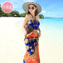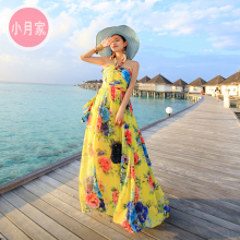 2015夏波西米亚雪纺挂脖抹胸大摆连衣裙显瘦海边度假沙滩裙长裙