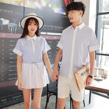 2017新款韩版情侣装夏装男衬衫女裙子日系小清新短袖连衣裙学生潮