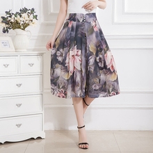 薄款阔腿裤女夏新款雪纺印花松紧高腰阔脚宽松显瘦九分宽脚裤裙裤