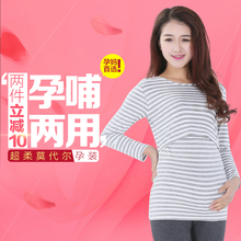 春秋大码薄款哺乳衣外出莫代尔上衣产后月子服孕妇秋衣秋裤套装
