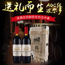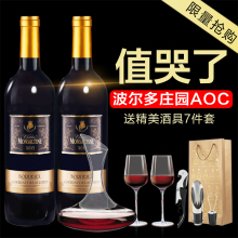 法国原瓶进口波尔多AOC红酒 庄园干红葡萄酒正品2支装 送酒具
