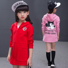 女童春秋装2016新款潮儿童装卡通外套女大童中长款韩版毛呢大衣