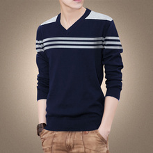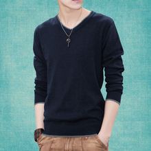 2017春季新款男装加绒加厚V领长袖毛衣青少年打底保暖男士针织衫