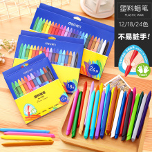 得力幼儿童塑料蜡笔12/18/24色三角笔杆油画棒美术绘画涂鸦不粘手