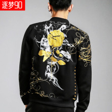 逐梦90 夹克男士外套秋冬季新款玫瑰印花青年秋冬季棒球服