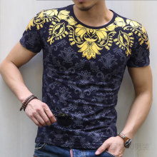 2017新款夏季纯棉男修身半袖T恤 圆领潮印花烫金图案短袖体恤小衫
