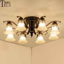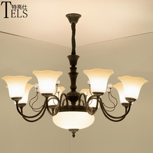 美式客厅吊灯 复式楼欧式大厅吊灯简欧led铁艺卧室灯玻璃餐厅灯饰