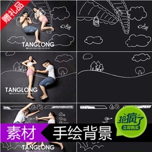 唐龙手绘模版孕妇照手绘线形素材影楼摄影背景psd模板素材
