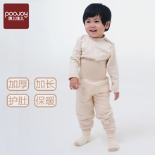 彩棉婴儿保暖裤可开档男三层加厚秋冬儿童高腰护肚裤夹棉宝宝秋裤