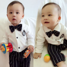 宝宝春秋夏季绅士连体衣男婴儿长袖薄款衣服百日周岁礼服纯棉哈衣