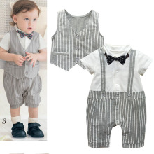 0-3个月新生儿衣服满月男婴儿绅士连体衣 宝宝夏哈衣短袖周岁礼服