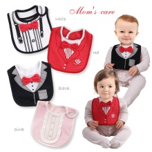男婴儿春秋季立体红领结绅士礼服造型口水巾男女宝宝围嘴三层防水