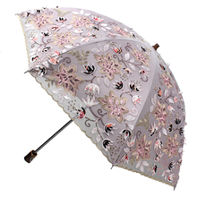 阿罗依双层高档太阳伞女士防晒防紫外线刺绣遮阳伞彩胶折叠伞两用