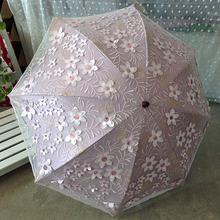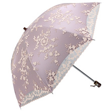 包邮三折叠双层刺绣花韩国公主伞黑胶防紫外线防晒遮阳太阳晴雨伞