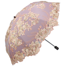 进口遮阳伞二折立体蕾丝刺绣花高档太阳伞黑胶防紫外线防晒公主伞