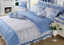 全棉韩式四件套田园公主荷叶花边床裙式青花瓷四件套1.51.8米床品