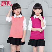 2017秋装新款儿童圆领套头羊毛衫女童针织背心童装中大童毛衣马甲