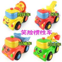笑脸工程车惯性车回力车益智儿童汽车玩具 挖土吊车 翻斗水泥