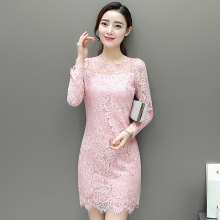 2017春装新款韩版女装长袖修身显瘦连衣裙时尚中长款蕾丝打底衫潮