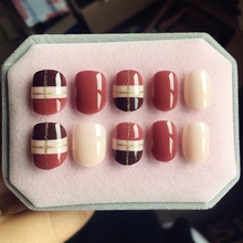 学院风来袭 奶糖金线短款 成品美甲 24片甲片 日系胶水款指甲盒装