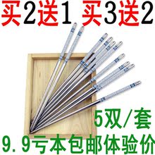 不锈钢筷子 中空防滑防烫青花瓷筷子韩式高档套装5双家庭家用