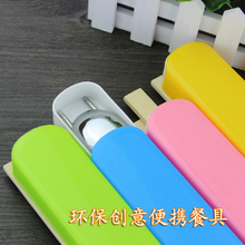 不锈钢便捷餐具套装筷子勺子学生旅行折叠汤勺环保盒子出行二件套