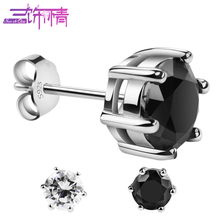 不易过敏S925银耳钉 男士 单只黑色潮男日韩版耳扣耳环耳夹首饰品