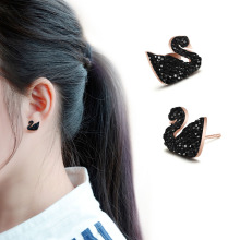 施家S925纯银满钻封底黑天鹅锁骨项链不过敏18K玫瑰金时尚项链