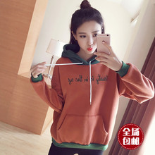 韩国刺绣字母春秋韩版女装BF原宿学院风休闲套头拼色宽松加绒卫衣