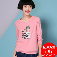 熙世界春装新品圆领长袖卫衣女装韩版印花打底衫193LB066