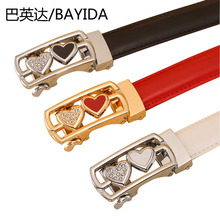 巴英达女士皮带真皮白色百搭细腰带自动扣韩版潮时尚装饰休闲简约