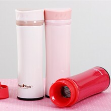 韩版创意带茶隔车载随手保温杯创意女士水杯不锈钢双层便携茶杯子
