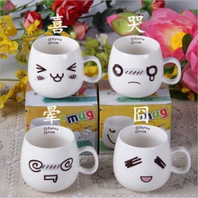 创意个性白色表情杯有手柄通用卡通陶瓷萌杯德化白瓷马克杯
