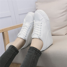 2017春新款内增高女鞋韩版厚底休闲鞋皮面松糕小白鞋坡跟单鞋女鞋