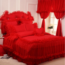 好梦连连韩版贡缎提花蕾丝婚庆床品床裙公主床上用品四件套1.8m