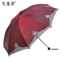 天堂伞三折叠蕾丝绣花遮阳伞防雨防紫外线太阳伞超轻两用晴雨伞女