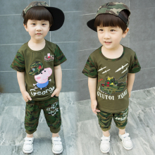 小猪佩奇童装男童夏装纯棉套装3-5-6-7周岁宝宝短袖儿童迷彩服潮