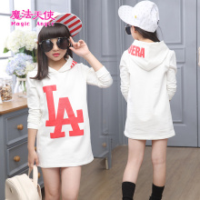 魔法天使童装女童新款秋装儿童衣服大童上衣连帽长款卫衣长袖T恤