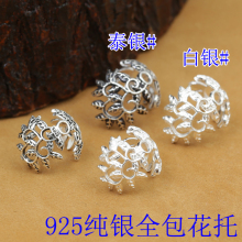 特价925纯银泰银配件 水晶佛珠DIY手串饰品材料 14mm全包镂空花托