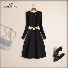 2017春秋装欧美高端刺绣气质大牌范修身显瘦连衣裙长袖女装A字裙