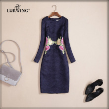 2017春秋款欧美高端刺绣修身女装大牌范气质提花显瘦连衣裙长袖