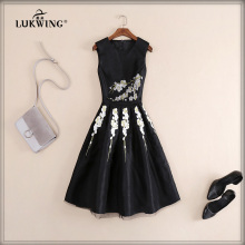 2017春装新款女装复古刺绣修身a字裙v领中裙优雅气质显瘦连衣裙