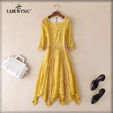 不规则蕾丝连衣裙春夏女装新款2017复古刺绣高端气质修身显瘦中裙