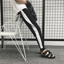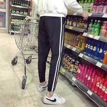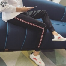 韩版潮流男士修身小脚收口束脚裤夏季学生一条杠白边九分休闲裤子