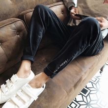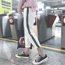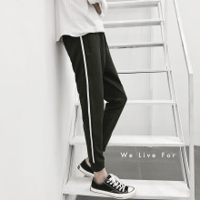 港风时尚男士青少年白边束脚裤修身型小脚一条杠学生运动九分裤子