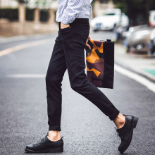 秋季新品简约时尚纯黑色水洗牛仔裤学生修身型小脚裤青年潮流裤子