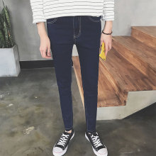 港仔文艺时尚韩国简约男生小脚牛仔裤修身版弹力百搭男士长裤子潮