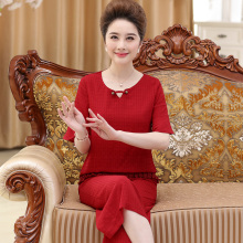 中老年女装夏装套装妈妈装两件套雪纺衫中年女装真丝T恤夏装裤子