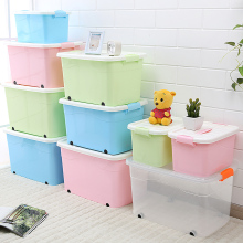 手提塑料收纳箱带盖滑轮玩具整理箱书本杂物储物箱内衣物收纳盒