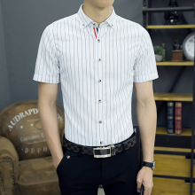 男韩版条纹衬衫青少年衬衣英伦短袖修身免烫条子休闲学生潮寸衫